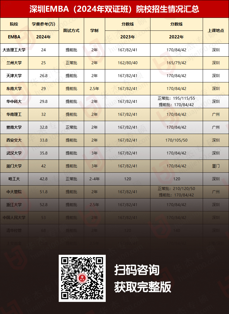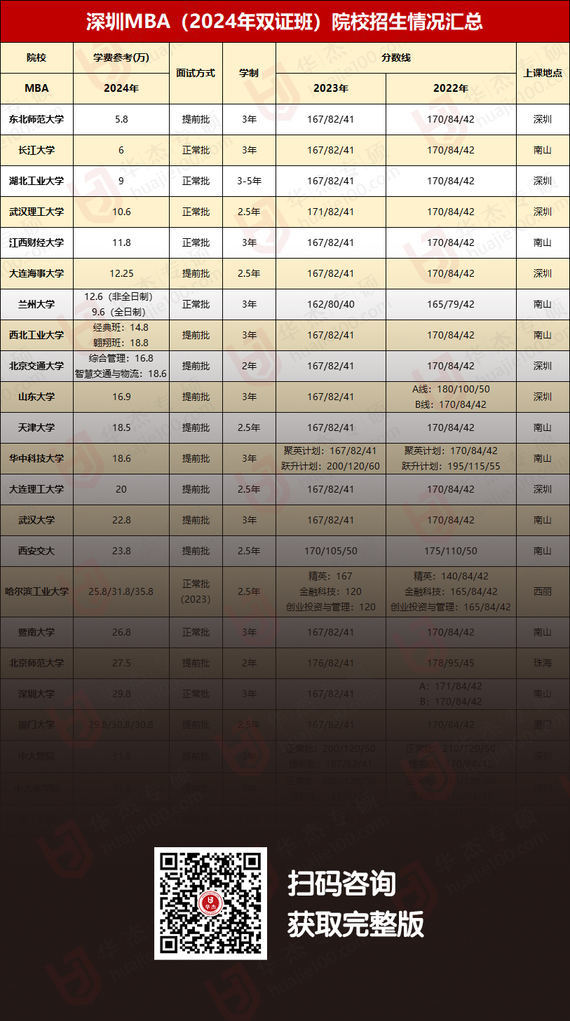 在深圳MBA招生院校有哪些?学费多少?几年可以读出来?录取的分数线怎么样?