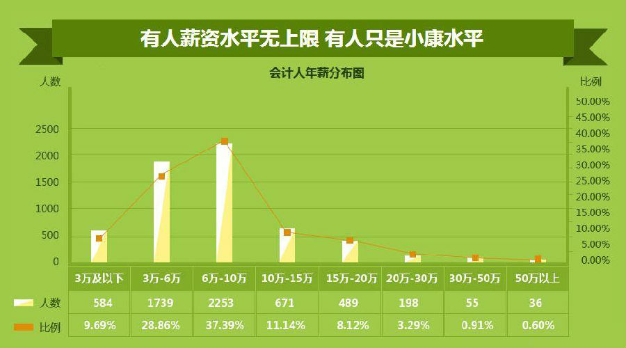 年薪10万以下的员工占据75.94%,有人薪资水平无上限,但有人还只是勉强小康水平,这是因为会计不是一个一劳永逸的职业。会计只是一个起点,往后的发展潜力还是要靠学历水平,管理经验,专业技能等多方面因素。