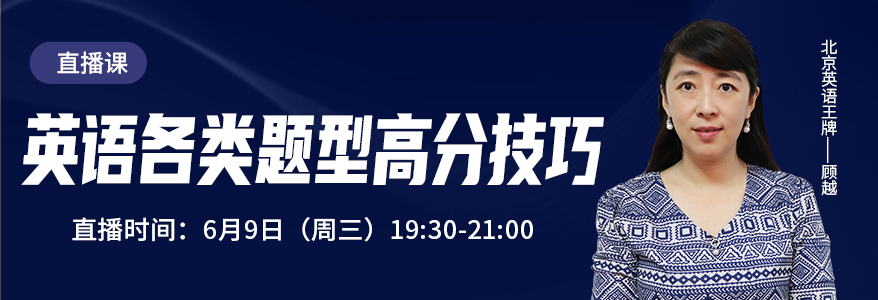 【直播公开课】6月9日英语各类题型高分技巧——英语王牌顾越