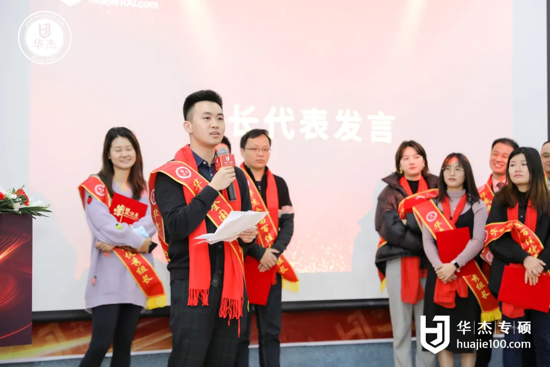 犹记得每位老师的谆谆教导,还有华杰名师团众位老师日复一日的答疑解惑,每一次探讨、交流,每个周末他们都陪着我们一起奋战,每一位老师都值得我们感谢、感恩。借此机会,学员代表为华杰师资团队代表送上了最诚挚的谢意。