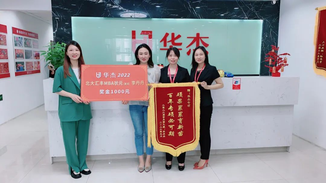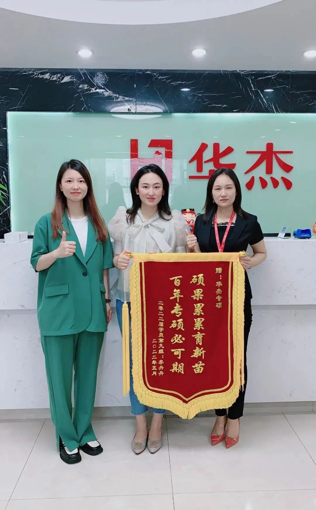 李丹丹同学还为华杰专硕送上心意满满的锦旗——硕果累累育新苗,百年专硕必可期,表达对华杰老师们的悉心辅导与专业服务的认可与感激!